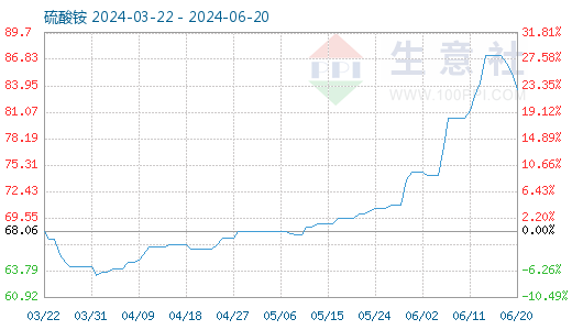 進(jìn)入六月中旬,國(guó)內(nèi)硫酸銨價(jià)格大幅拉升。企業(yè)開工穩(wěn)定,市場(chǎng)供應(yīng)充足。下游采購(gòu)積極性提升,市場(chǎng)詢單增加。國(guó)際市場(chǎng)價(jià)格走高,利好國(guó)內(nèi)硫酸銨市場(chǎng)。隨著硫酸銨價(jià)格連續(xù)上漲,下游開始謹(jǐn)慎接貨,硫酸銨漲勢(shì)趨緩。截至6月18日,焦化級(jí)硫酸銨,山東地區(qū)主流出廠報(bào)價(jià)1045元/噸左右。己內(nèi)級(jí)硫酸銨,山東地區(qū)主流出廠報(bào)價(jià)1030-1070元/噸左右。